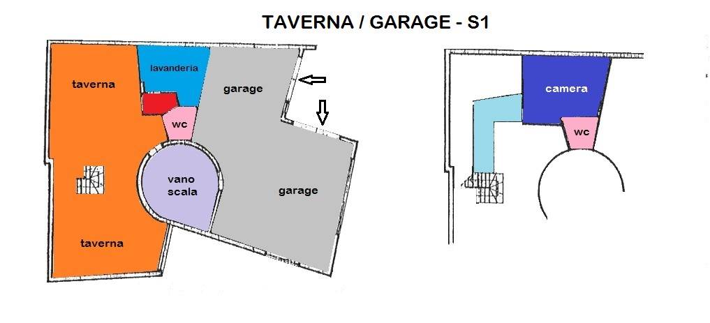 Piano seminterrato: Taverna / Garage = Mq 172,00